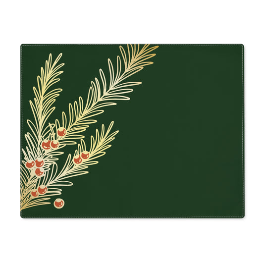 Green and Gold Holly and Berries Christmas Placemat, 1pc
