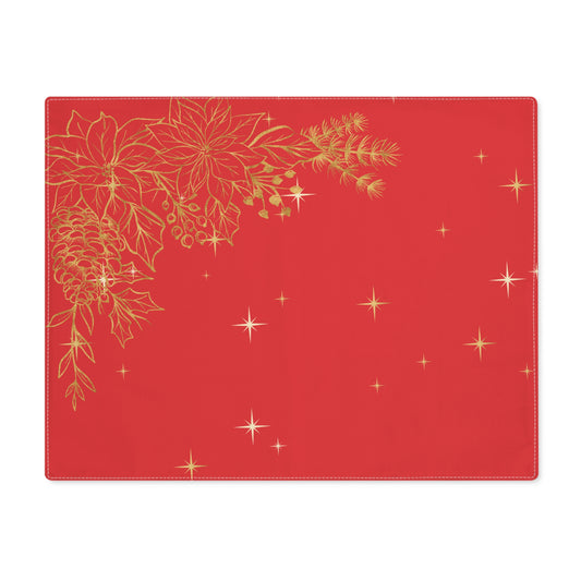 Red and Gold Pines and Poinsettias Christmas Placemat, 1pc