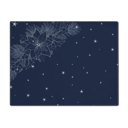 Dark Blue and Silver Pinecones and Poinsettias with Stars Christmas Placemat, 1pc