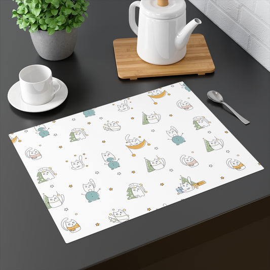 Snowmen Gifts and Cats Christmas Placemat, 1pc