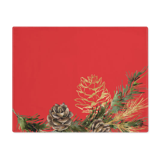 Red and Gold Pines and Poinsettias Christmas Placemat, 1pc