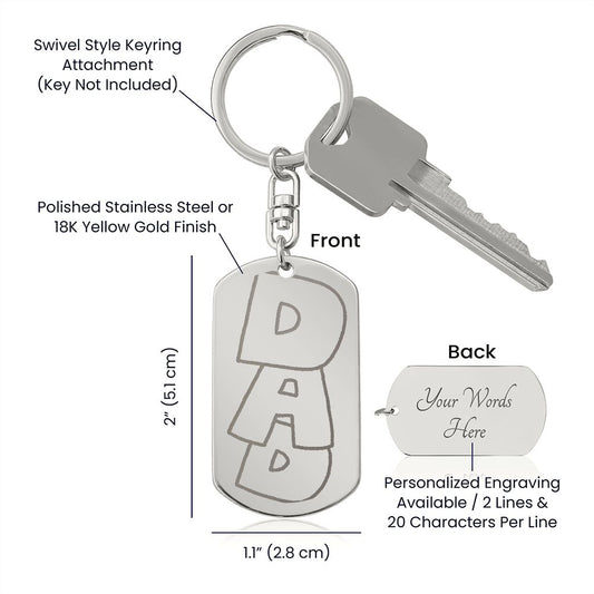 Dad Engraved Stainless Steel Dog Tag Keychain