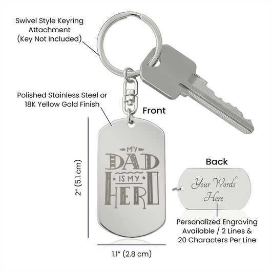 Dad, My Hero Engraved Stainless Steel Dog Tag Keychain