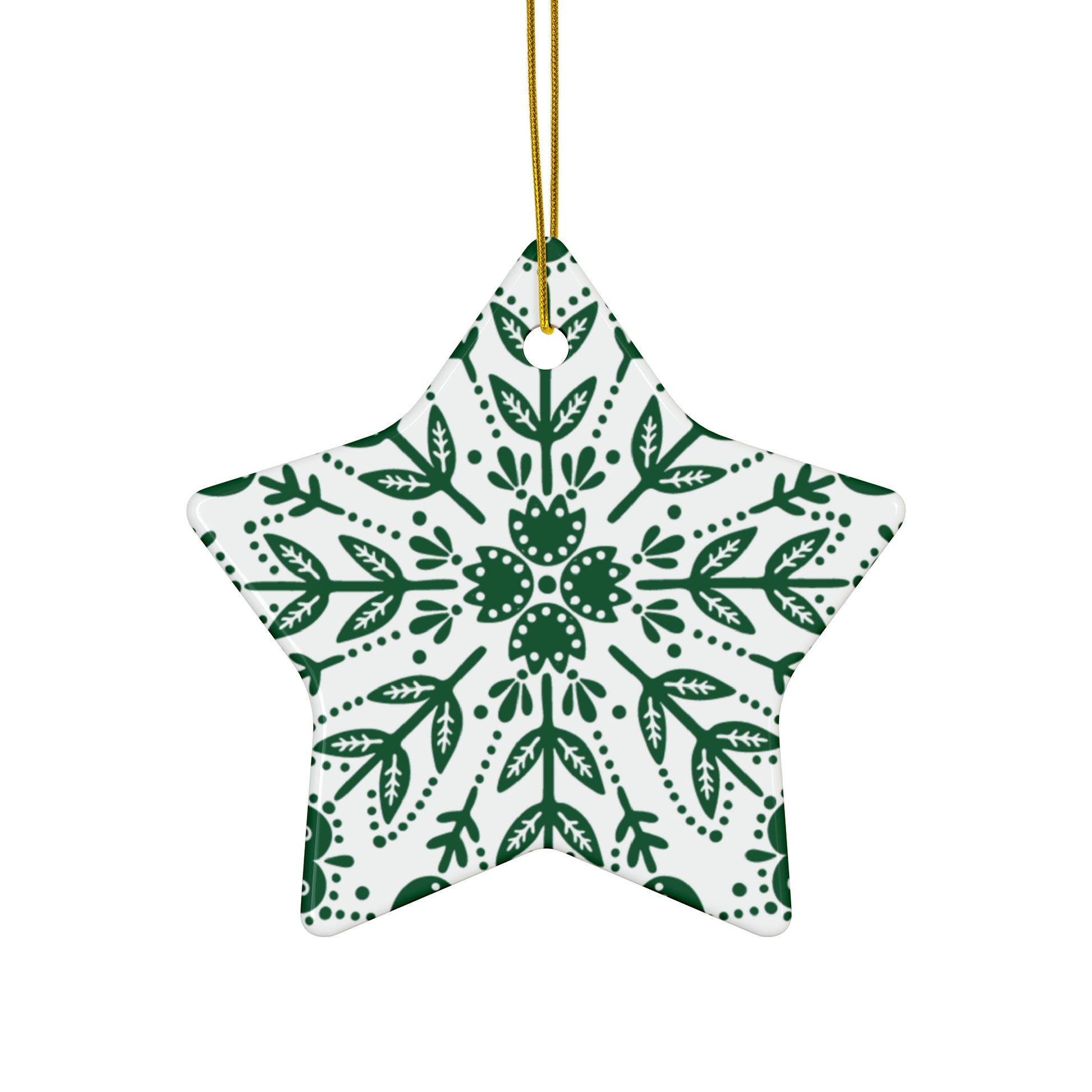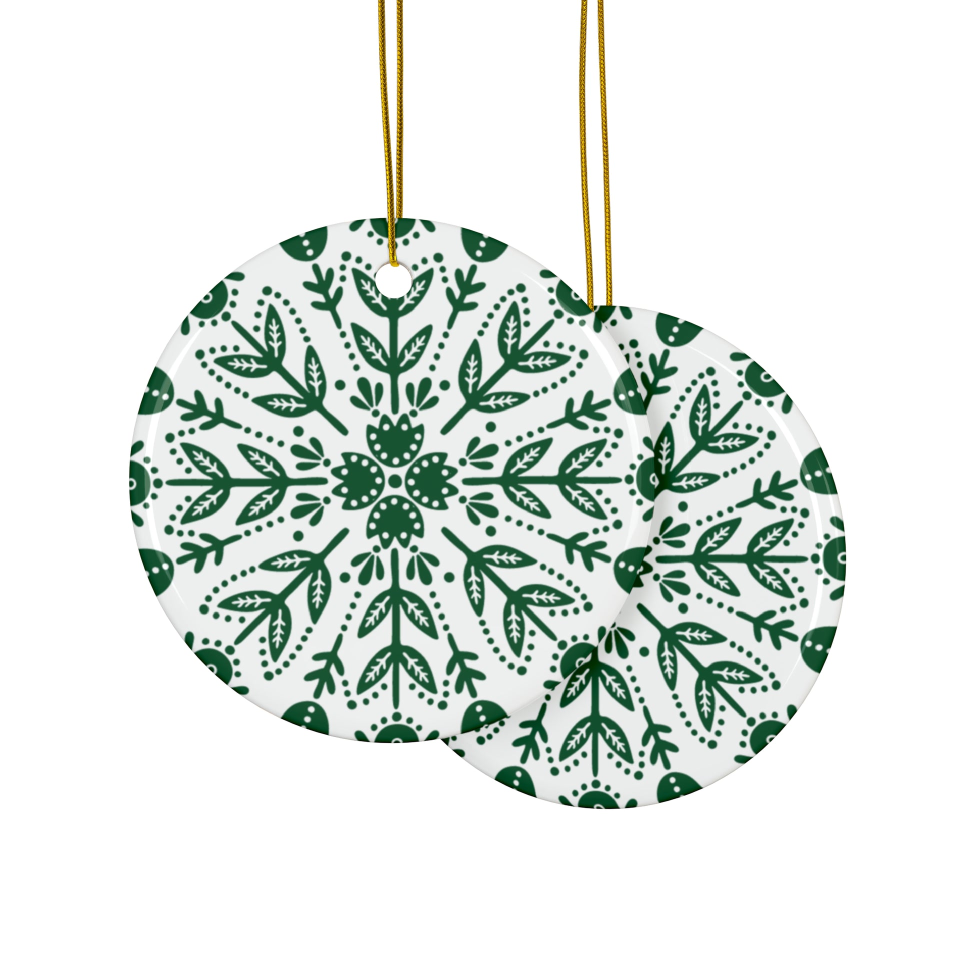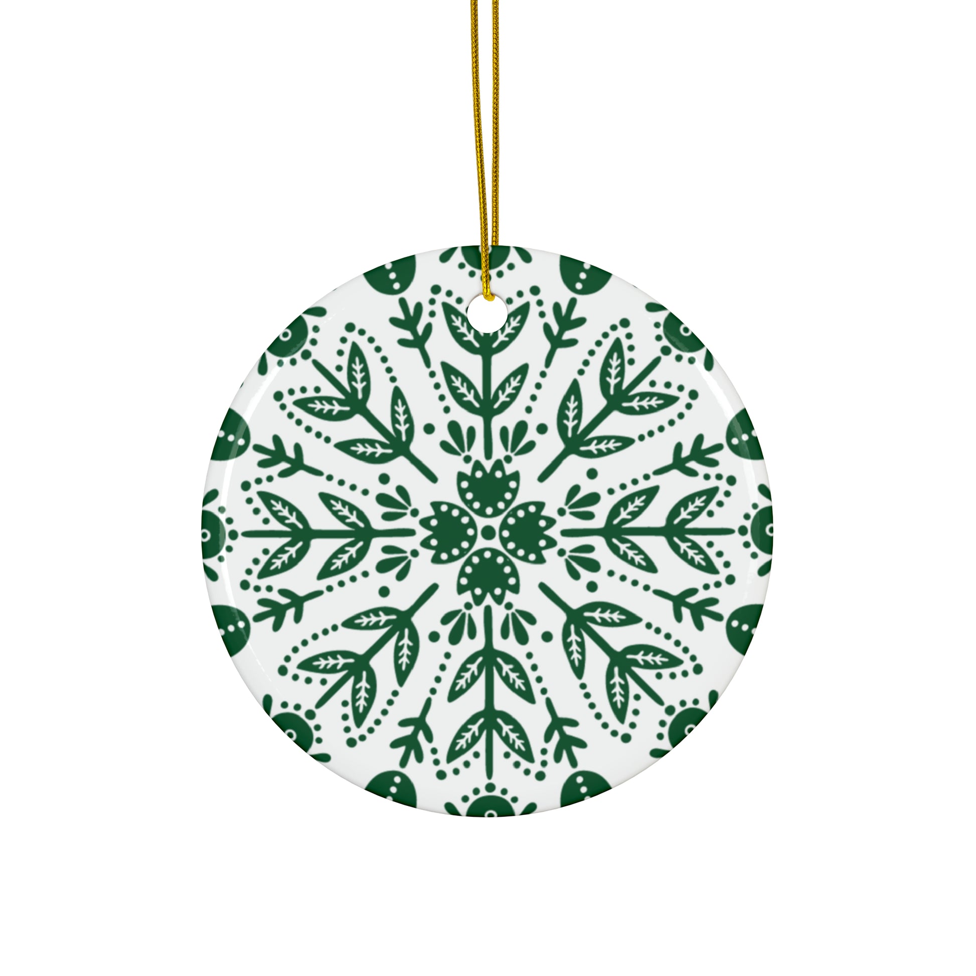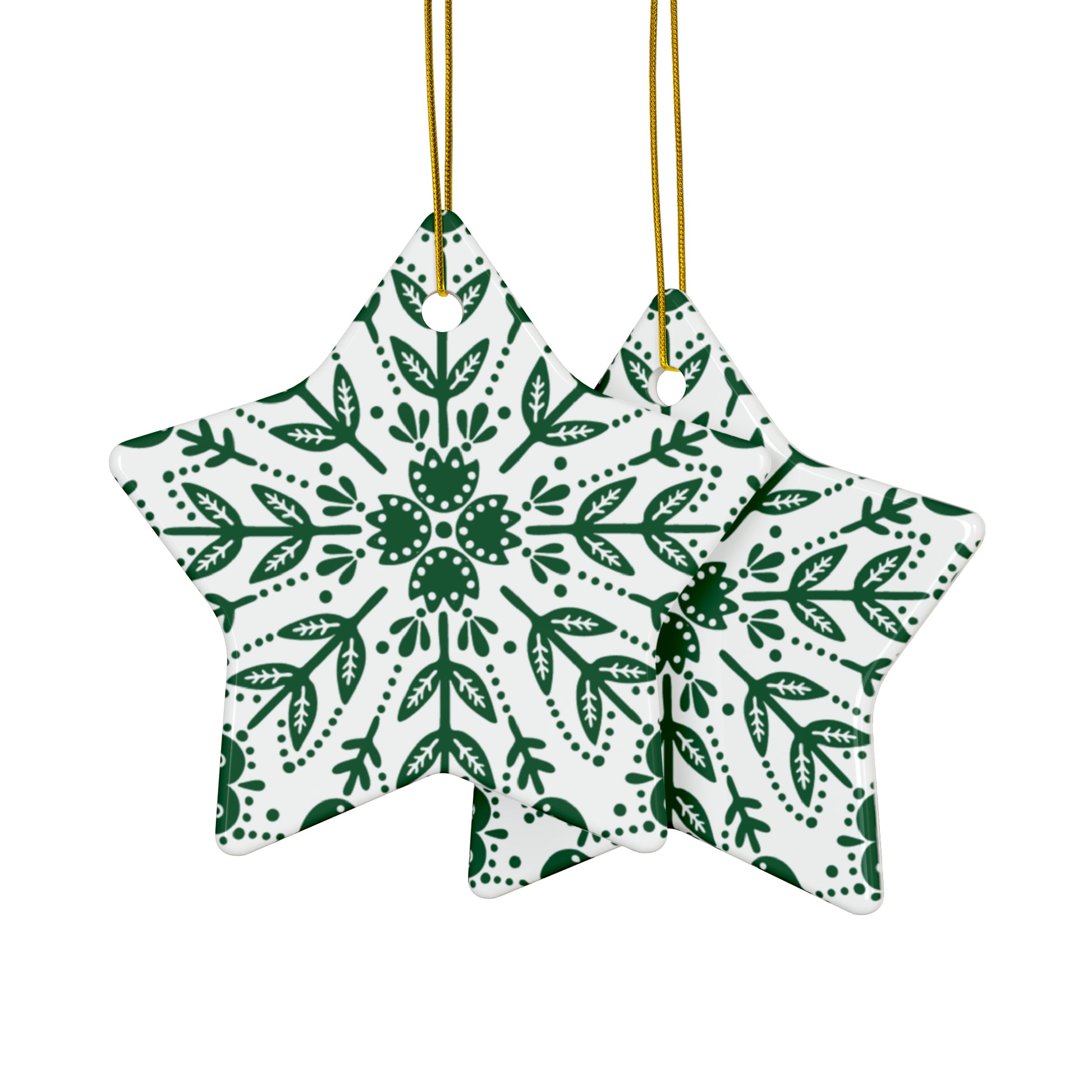 Create stunning decorations for the holiday season and beyond with these Scandinavian Christmas ornaments. Made with durable ceramic, these ornaments feature a two-sided print. Offer 3 shapes and bundles of 1, 3, 5, 10 pieces to cover all your needs. .: Same design printed front and back .: Material: 100% Ceramic .: Available as a single ornament and in bundles of 3, 5 or 10 pieces .: Glossy finish .: Three shapes to choose from .: Includes gold string for hanging