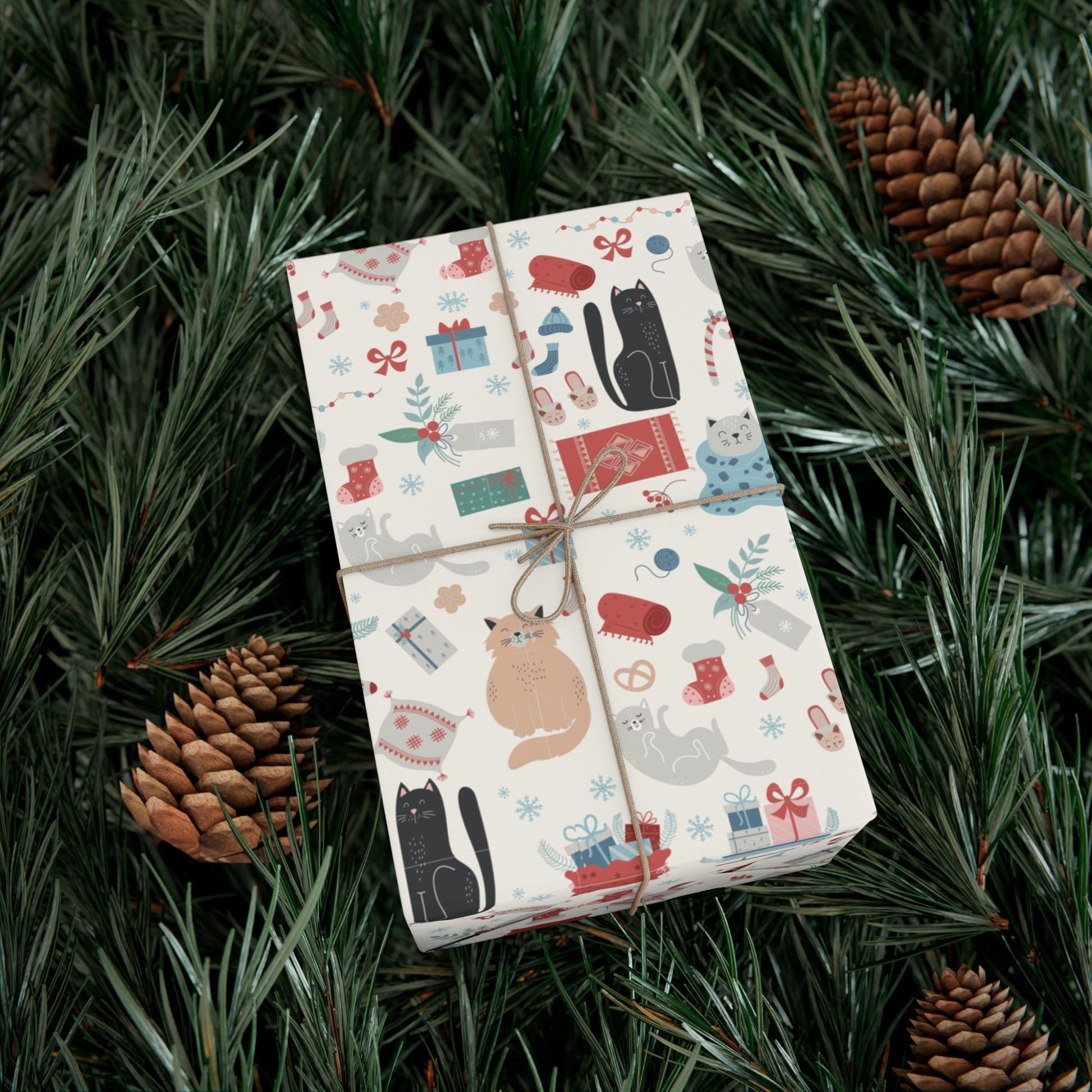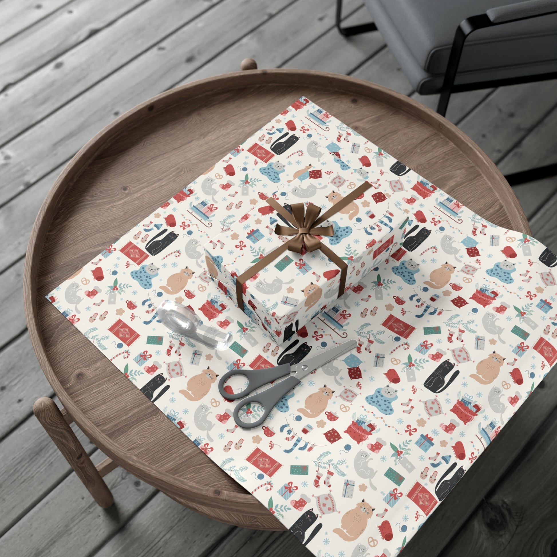 Make any gift bring an even wider smile to the receiver with this Cats and Stockings Christmas gift wrap paper. Available in two paper finishes (satin, matte), this wrap lets you choose what best fits your audience's needs. Each sheet is printed using GreenGuard UL Certified inks and the blank paper is made in the USA under strict quality control.