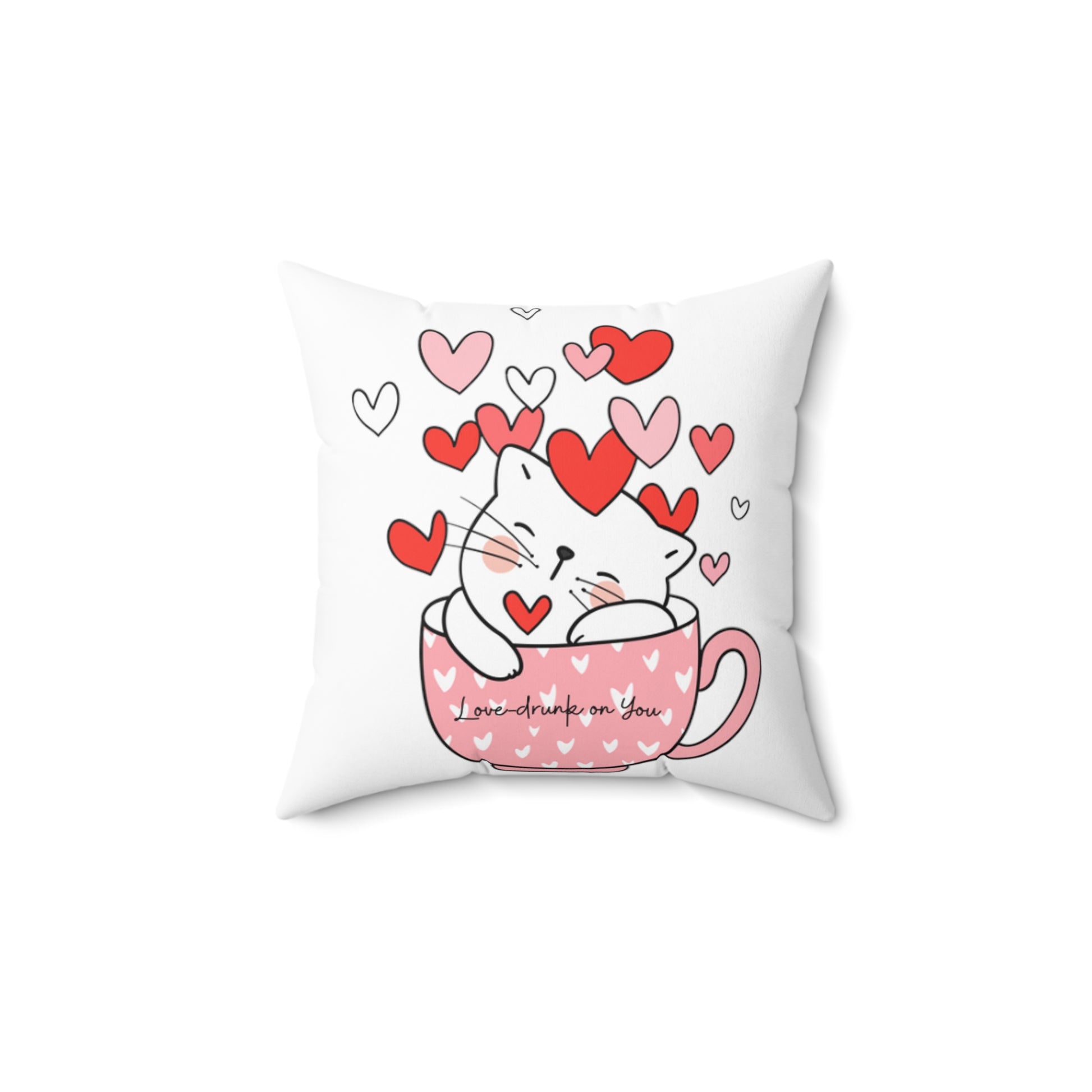 Love-drunk on You Valentines Day Gift Kitty Cat Comfort Spun Polyester Square Pillow