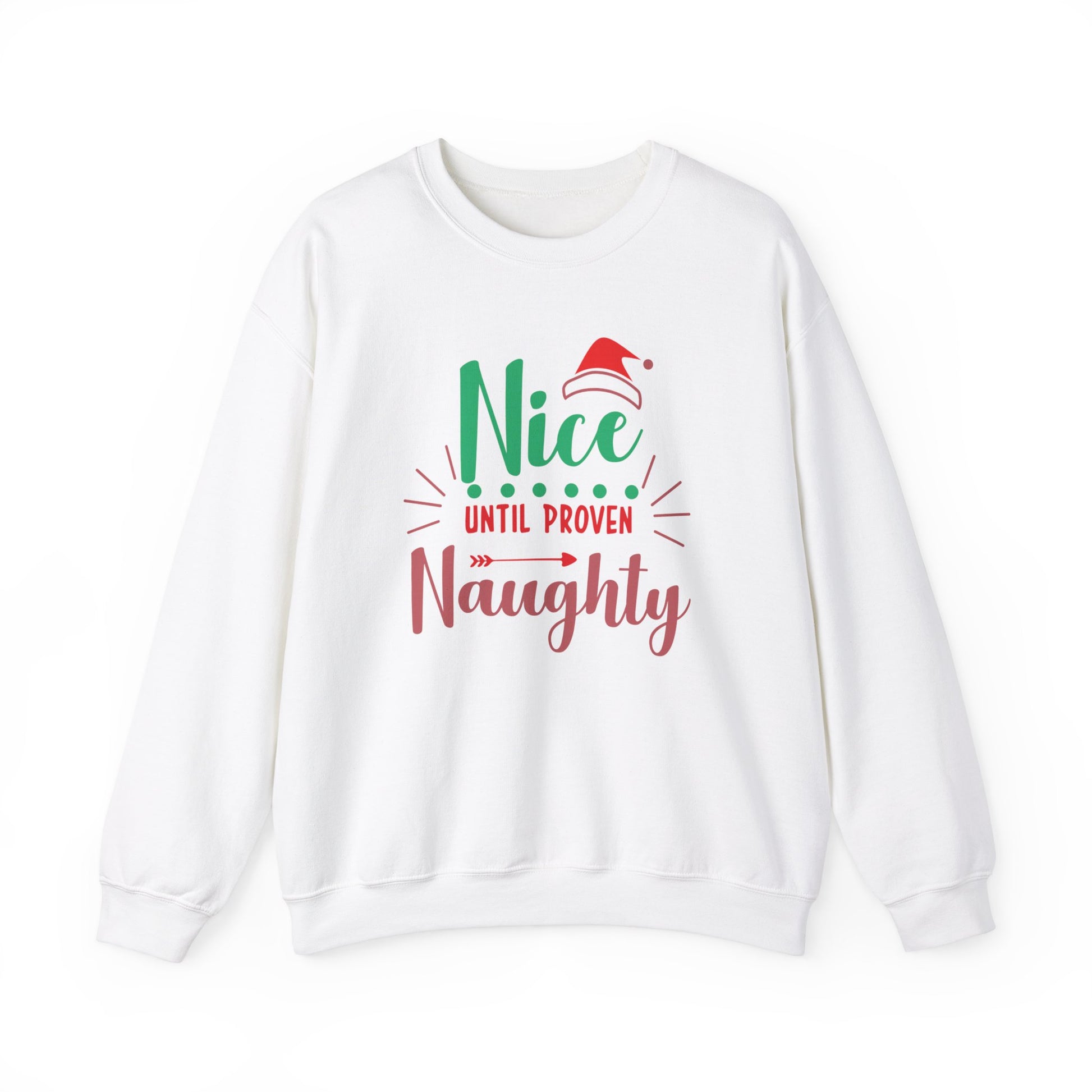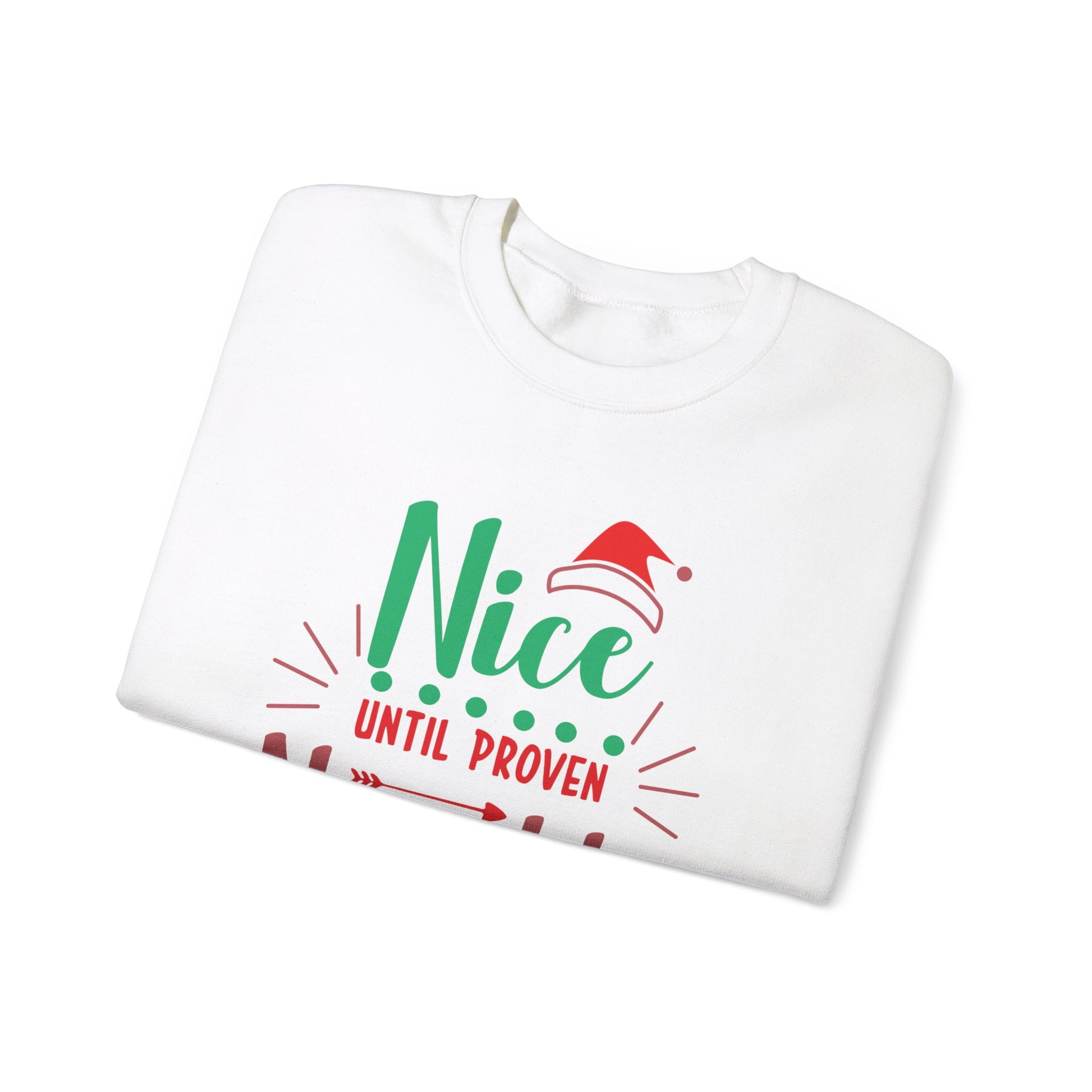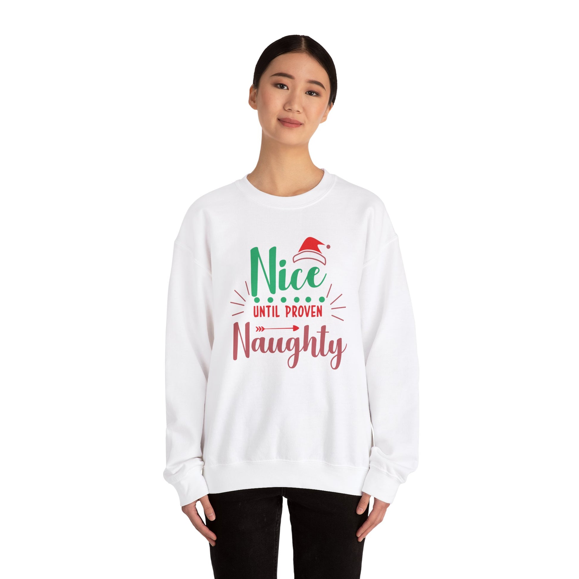 Red and Green Nice Until Proven Naughty Christmas Unisex Heavy Blend™ Crewneck Sweatshirt