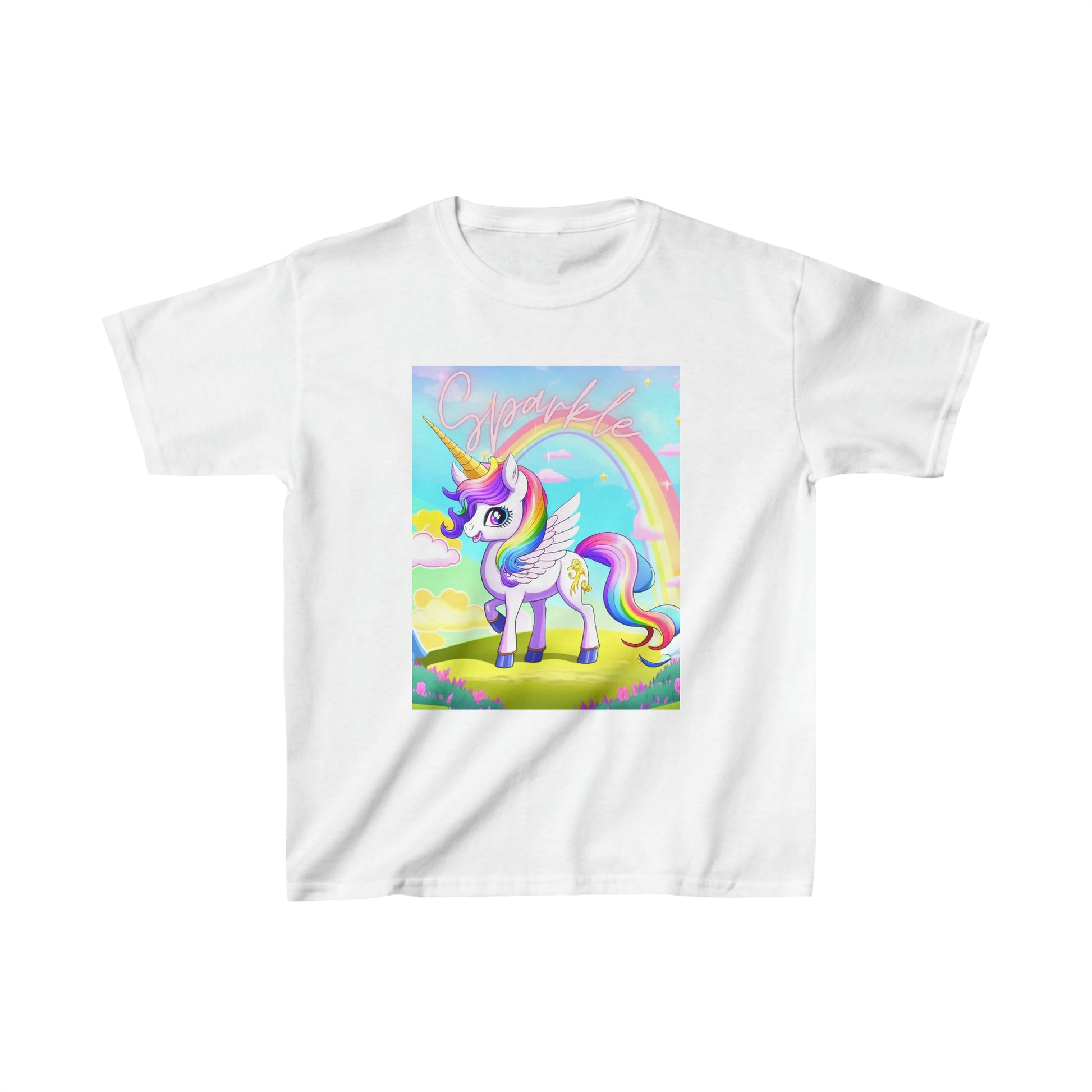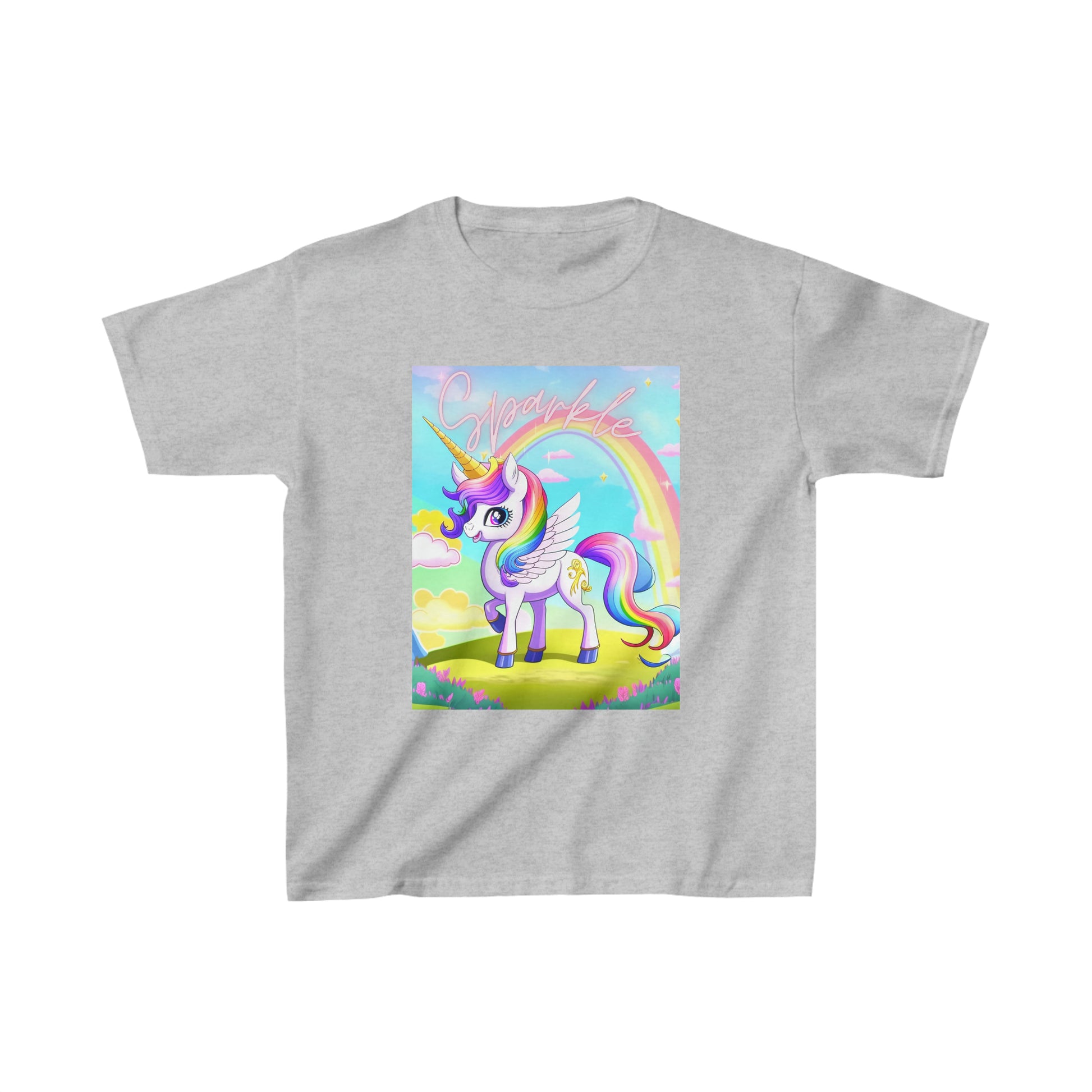 The kids heavy cotton tee is perfect for everyday use. The fabric is 100% cotton for solid colors. Polyester is included for heather-color variants. These fabrics are prime materials for printing. The shoulders have twill tape for improved durability. The collar is curl resistant due to ribbed knitting. There are no seams along the sides.