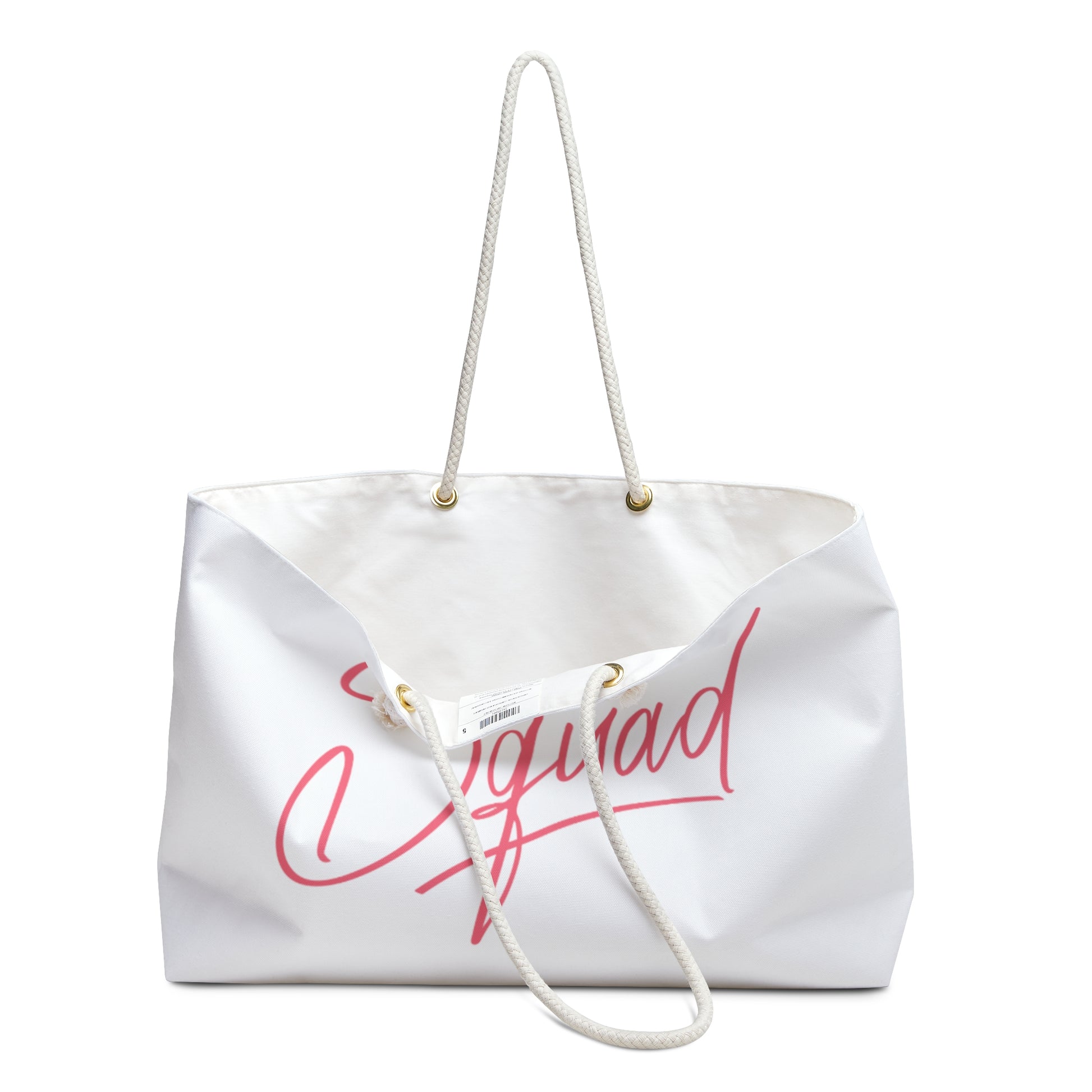 Our oversized Weekender Tote is perfect for your weekend at the beach or in town. The wide-mouthed, durable bag holds a generous amount of personal items and is easily held by its thick rope handles.