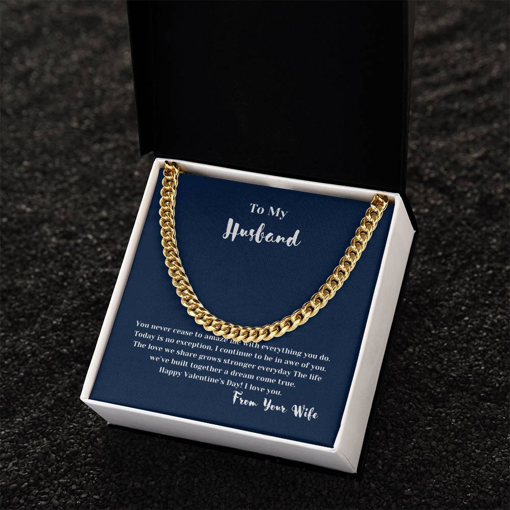To Husband on Valentines Day | Gifts for Him | Cuban Chain Link Necklace with Message Card