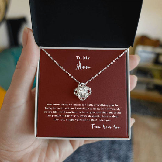 To Mom from Son | Love Knot Necklace with Message Card | Thoughtful Gift for Mom