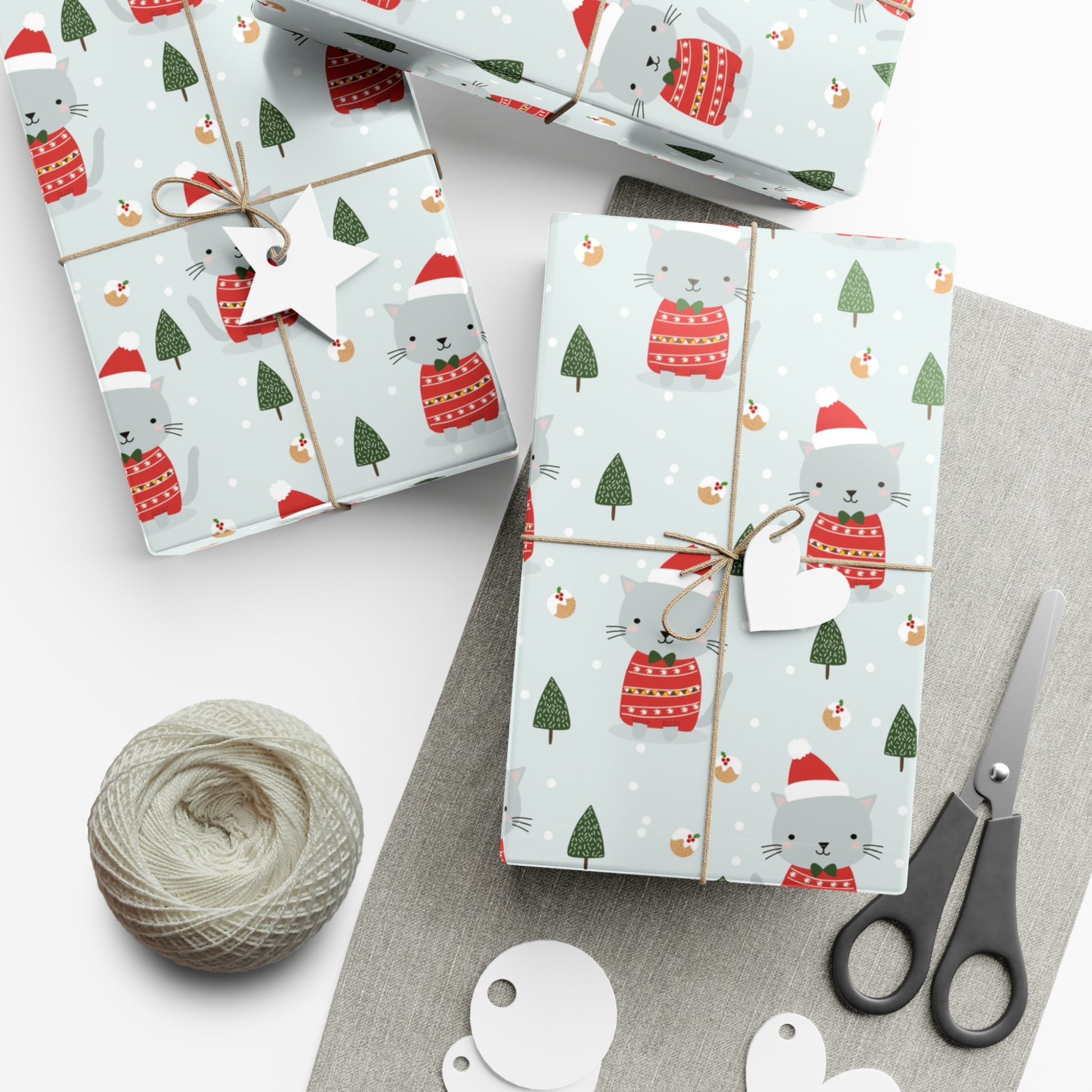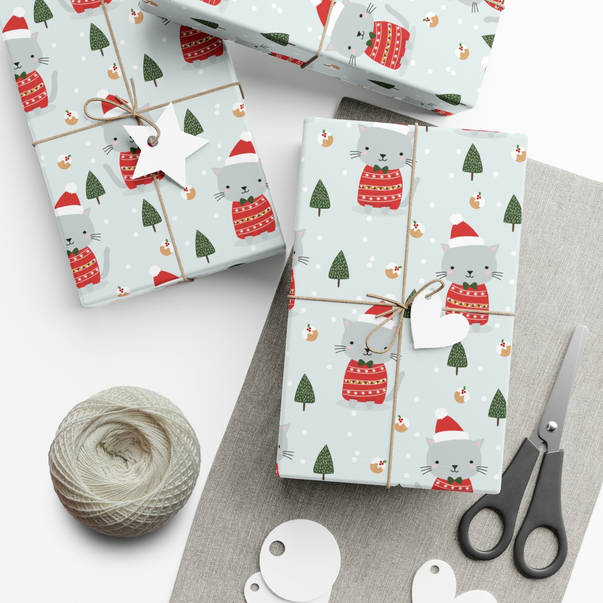 Make any gift bring an even wider smile to the receiver with this Gray Cat Christmas gift wrap paper. Available in two paper finishes (satin, matte), this wrap lets you choose what best fits your audience's needs. Each sheet is printed using GreenGuard UL Certified inks and the blank paper is made in the USA under strict quality control.