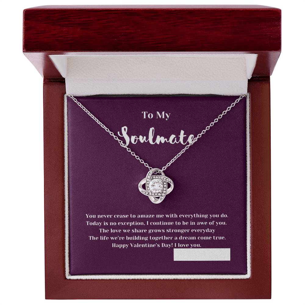 To My Soulmate on Valentine's Day | Thoughtful Gifts for Her | Love Knot Necklace With Message Card